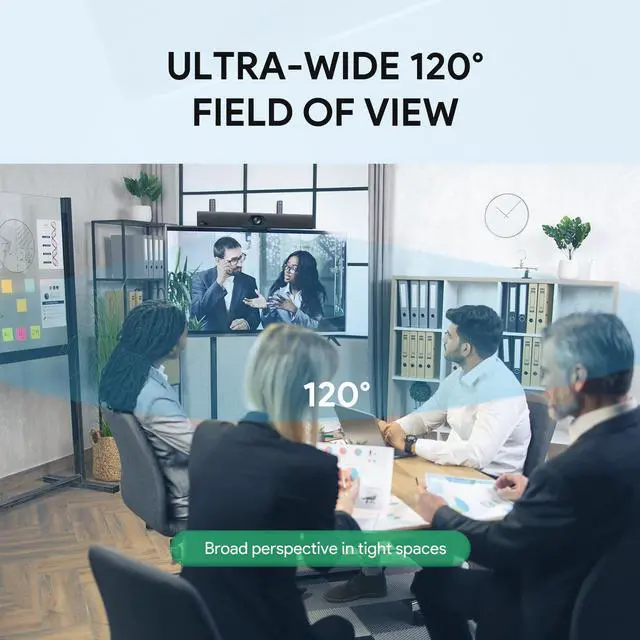Super-Wide 120° Field of View: The 120° ultra-wide angle easily covers every corner of the meeting room, capturing all participants.