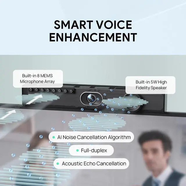 Ultra-HD 4K Camera: The 1/1.8-inch CMOS ultra-HD 4K lens ensures clear and smooth video calls with vivid, detailed presentations.