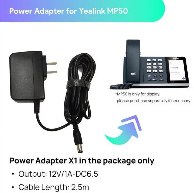 Cable Length: 2.5 m ( 8.2 ft)- Compatible for Yealink MP50 ^^ NOT available for MP54[NOTICE] The USB phone MP50 should be worked with Yealink original power adapter (12V/1A) only. The third party power adapter may damage the phone.