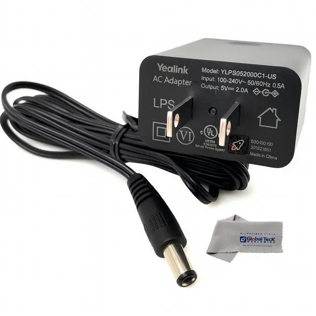 Global Teck Bundle of 2 items: Includes the Yealink PS5V2000US Power Supply Adapter (5 Volt 2Amp) and a Global Teck microfiber cloth for keeping your devices clean and professional ^^