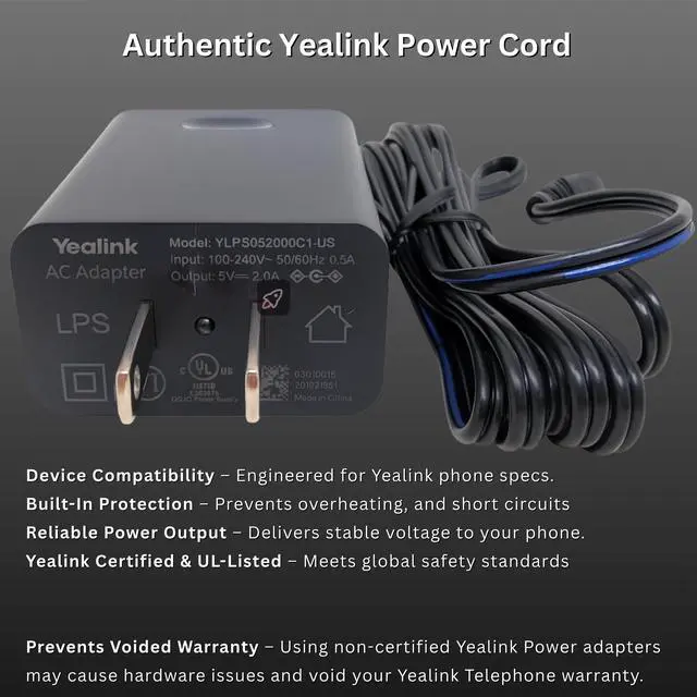 Genuine Yealink Accessory: Official Yealink product (Model #YLPS052000B-US) for guaranteed quality and compatibility; plug in and power your Yealink desk phone with original manufacturer parts. ^^ Reliable and
