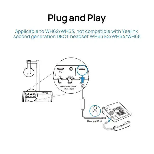 Wide Compatibility: Compatible with a range of Yealink IP phones (T3X, T4X/T5X), making it a versatile choice for various office setupsPlease make sure your phone and headset are working properly. WH62/63 needs to upgrade the firmware to 104.434.0.15 or later.