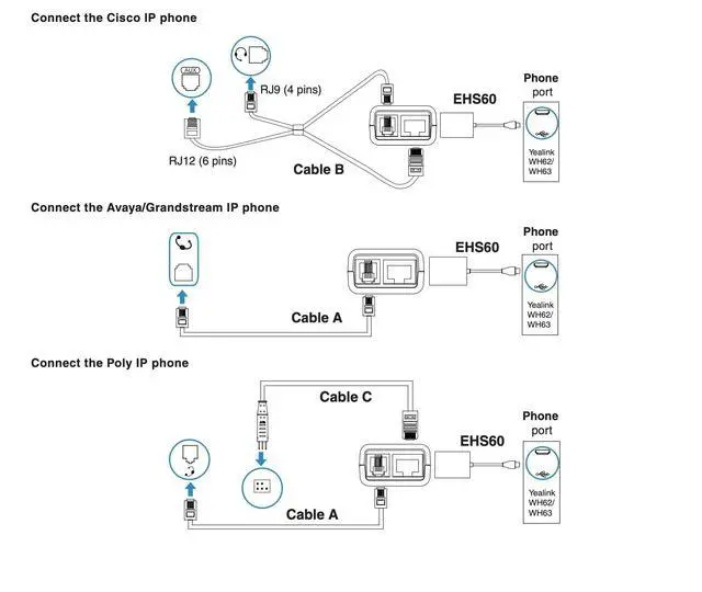 Yealink EHS60 Headset Adapter, Compatible with Cisco/Avaya/Poly/Grandstream Desk Phone, Connect to WH62 WH63 WH66 WH67 Wireless DECT Headset
