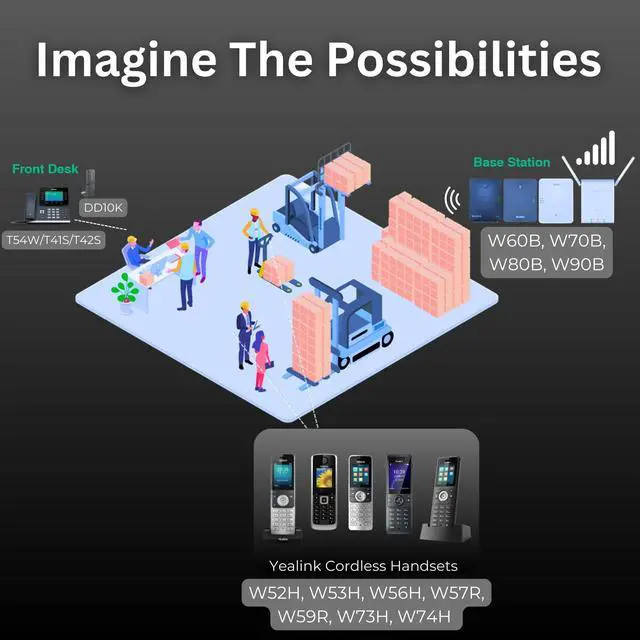 - Base Stations: Yealink W60B, W70B, W80B, W90B.