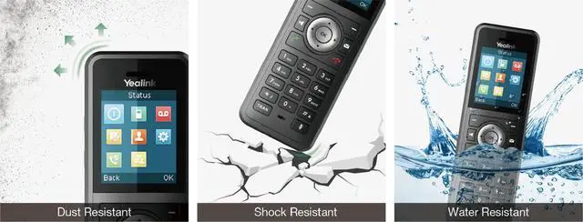 Yealink W59R, certified to rigorous IP67 standard, is a professional ruggedized DECT handset with integrated Bluetooth and vibration alarm that is pretty eligible for the environment where there may be dusty, humid, and harsh. Not only combined the advantages of wireless communication and the rich features of Voice-over-IP phone, but also fully compatible with Yealink W80 Multi-Cell System for seamless roaming and handover of the calls, this handset provides users with the convenience and good experience of mobile communication in and between each zone and keeps stable in the complicated and harsh locations.