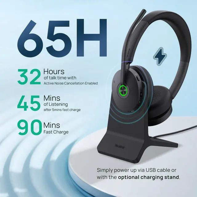 ^^ Long Battery Life This wireless headset maintains its consistent battery advantage, even upgraded the battery capacity. BH74 provides up to 32 hours of talk time (with ANC & busylight off), up to 65 hours of music time and up to 20 days of standby time. At the same time, the charging of headphones only takes 90 minutes at the longest, thus getting rid of power anxiety. ^^ Deep ANC Enabled Beyond the Basic ANC mode for general environments, the BH74 also offers an "Immersive ANC" mode for complete focused work.