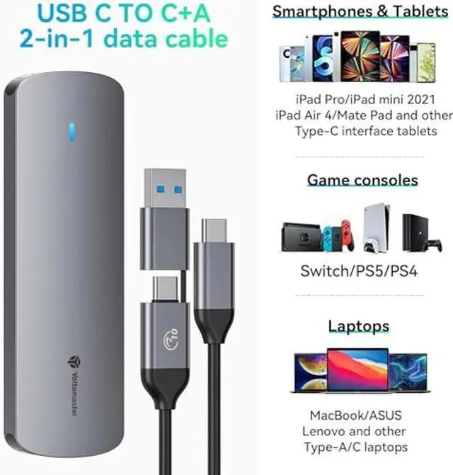 Fast and Efficient: This M. 2 NVMe enclosure boasts a high-end master control solution that supports USB 3.2 Gen2 10Gbps rate, ensuring rapid data transfer. Equipped with a USB C TO C+A two-in-one data cable, it delivers fast and efficient performance.