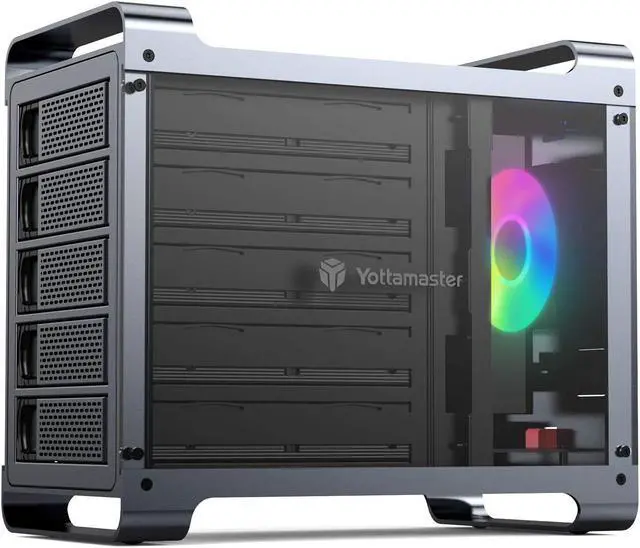 Yottamaster 5 Bay RAID Hard Drive Enclosure, Aluminum 2.5" & 3.5" SATA HDD/SSD External Enclosure with RGB Fan, Support 90TB Direct Attached Storage DAS RAID1/5/10/JBOD for RGB Gaming-Style [DF5RU3]
