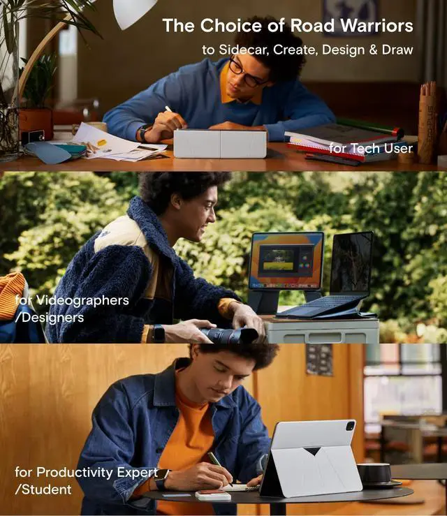[Write Smoothly, Chill Sometimes, and Switch Anytime] Fold this tablet stand into three modes-Floating Mode perfect for sidecar use anywhere, Focus Mode for viewing content, and Drawing Mode for creating on the go. With the tablet Case, you can even switch to typing on the Magic Keyboard in an instant.