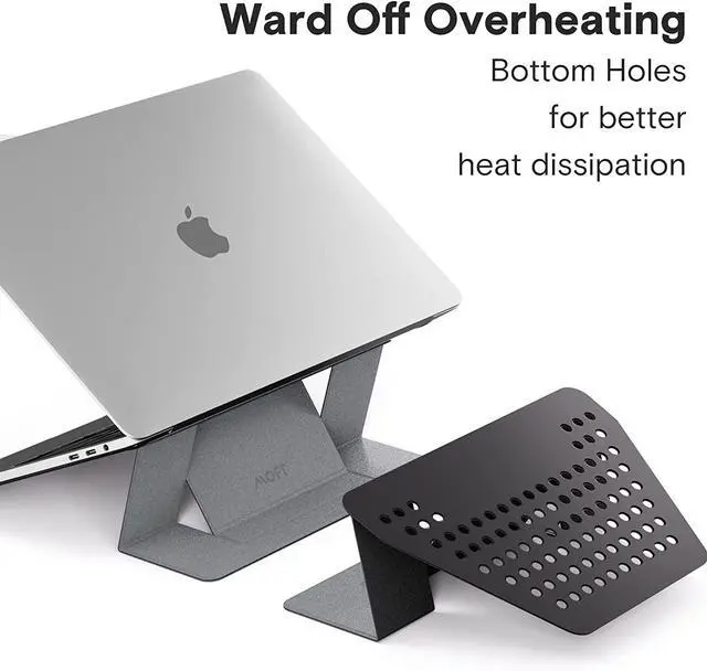 [One Piece Exclusive Structure] Our foldable laptop stand is one piece when it's not in use, taking no extra space. It's a rock solid stand when it's folded up. Transformation only takes one second.