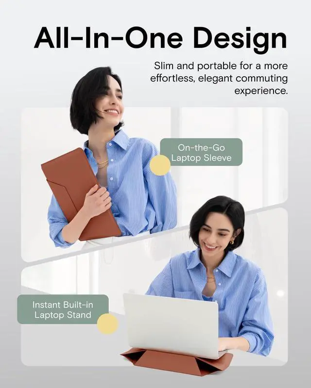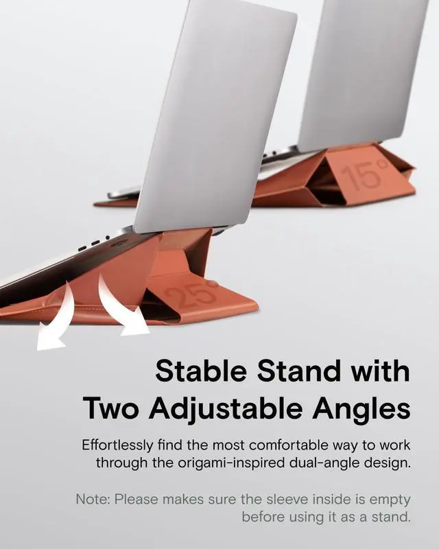 Sleeve Stand: Instantly convert this sleek Laptop Sleeve into a sturdy Laptop Stand. Features dual-angle adjustment (15 for typing; 25 for viewing) to elevate your screen, reducing neck/wrist strain from poor posture. More than a protective Laptop Bag, this ergonomic Computer Bag works anywhere transforming your carry sleeve into a pain-relieving workstation.
