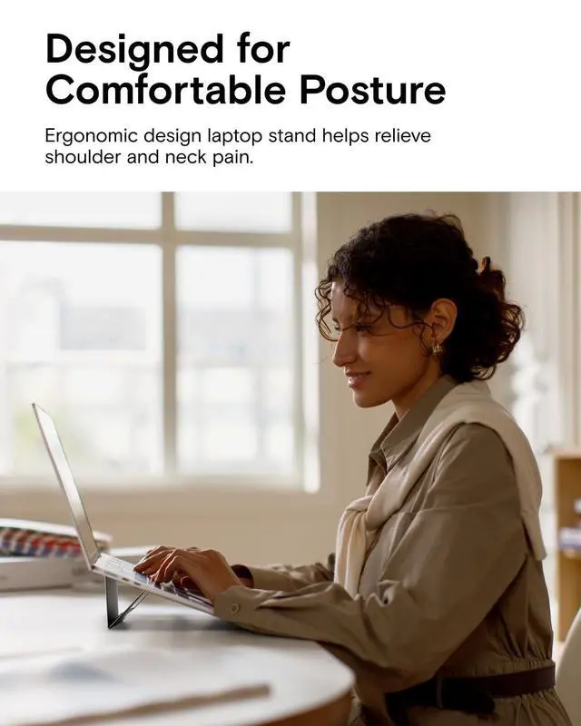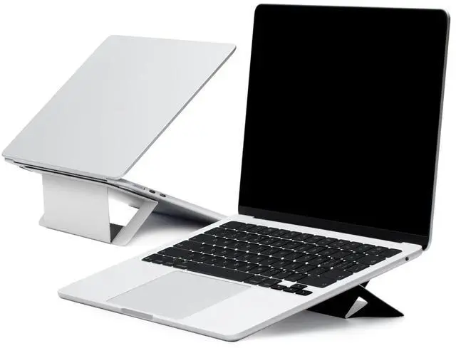 [ Dual-angle Adjustment ] The adjustable viewing mode significantly optimizes on your sitting posture with a 3" or 2" elevation to your laptop screen ^^ [ Small yet Heavy-duty ] Made from fiberglass from recycled industrial material, it's compact yet sturdy to support up to 16" laptops ^^ [ Residue-free & Reusable ] You can detache it easily from your laptop without leaving marks, re-attaching it with the same strong effectiveness ^^ [ Open Design for Ventilation] It helps PCs to keep cool by promoting natural air movement through its open design ^^ [ Vegan Leather Resists Scratches] Crafted with specially-made vegan leather, it's smooth to the touch, scratch-resistant and eco-friendly
