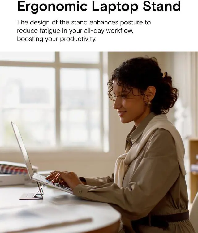 The MOFT laptop stand is only 1/9 inch thick and weighs only 3 ounces, making it easy to carry and completely invisible when attached to your computer. MOFT laptop stand holder is made of unique PU and fiberglass material, and can support up to 11 pounds of laptop stably, suitable for all kinds of laptops up to 16 inches, such as Macbook air, Macbook pro, as a Macbook stand. Its unique one-piece design does not take up extra space when it is not in use, and when it is unfolded it is very sturdy, and the conversion takes only a second.