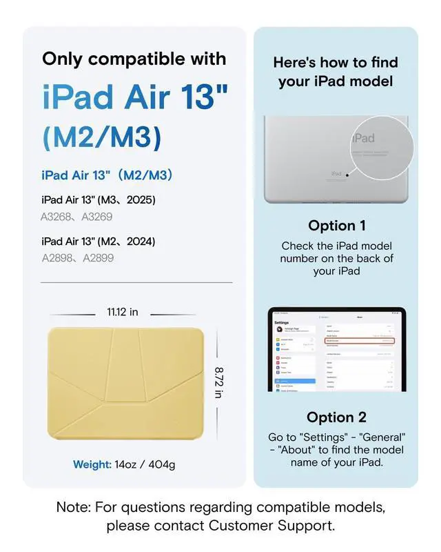 • Compatibility - Exclusively compatible with iPad iPad Air 13" (M3 2025/M2 2024) - (Model: A3268, A3269, A2898, A2899) Note: It will not be compatible other model. Please check your iPad model before purchase. For questions about compatible models, please feel free to contact us.