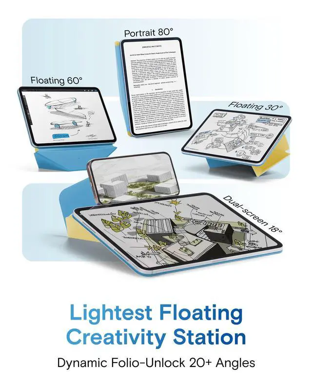 • Dynamic Angles, Move with Flow - The Dynamic Folio with 20+ adjustable angles for iPad offers fluid angle adjustments that flow with your every need. Effortlessly shifting from work to creativity, it combines minimalist design with versatile functionality, enhancing your dynamic lifestyle.