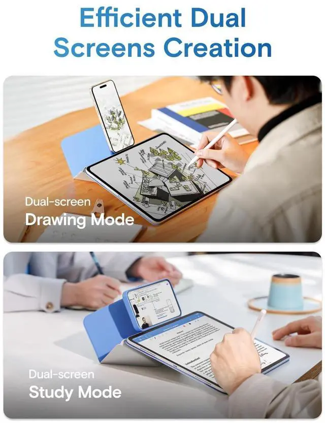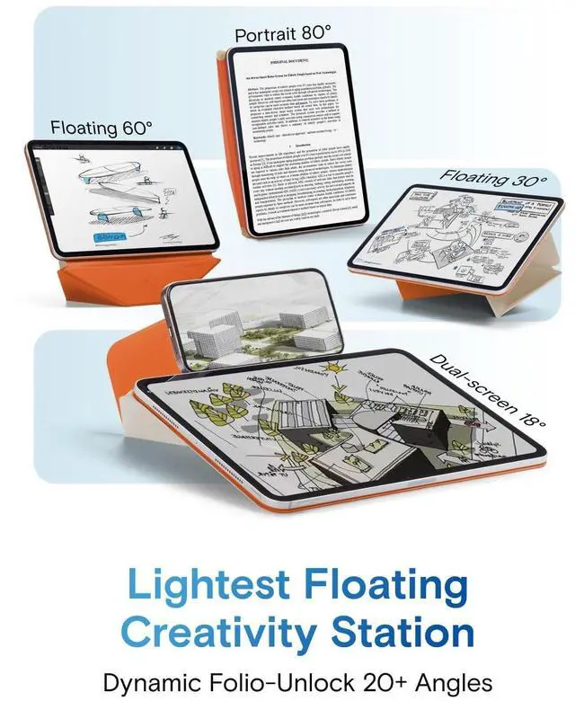 Note: It will not be compatible other model. Please check your iPad model before purchase. For questions about compatible models, please feel free to contact us. ^^ Dynamic Angles, Move with Flow - The Dynamic Folio with 20+ adjustable angles for iPad offers fluid angle adjustments that flow with your every need. Effortlessly shifting from work to creativity, it combines minimalist design with versatile functionality, enhancing your dynamic lifestyle. ^^ Ultimate Ergonomic Floating Modes - MOFT Dynamic Folio Case makes iPad ergonomics effortless for mobile creativity - featuring a single-piece structure that effortlessly folds into a workstation lifting iPads up 2-inches. Frictionless angle shifts between 30 and 60 keep you aligned in your input-output framework. ^^ As Light As 14oz - Like a thin yet powerful sheet of paper wrapping around your iPad, this folio offers effortless protection and versatile angles - perfect for any scene without the added bulk, all at just 14oz. ^^ Magnetic Flexibility - Effortlessly adjust angles and elevate your device with confidence. Super-strong N52 magnets provide secure support, while the lightweight yet durable fiberglass structure ensures stability.