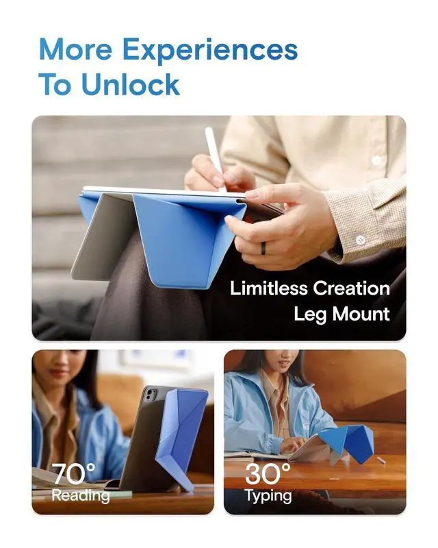 Note: It will not be compatible other model. Please check your iPad model before purchase. For questions about compatible models, please feel free to contact us. ^^ Dynamic Angles, Move with Flow - The Dynamic Folio with 20+ adjustable angles for iPad offers fluid angle adjustments that flow with your every need. Effortlessly shifting from work to creativity, it combines minimalist design with versatile functionality, enhancing your dynamic lifestyle. ^^ Ultimate Ergonomic Floating Modes - MOFT Dynamic Folio Case makes iPad ergonomics effortless for mobile creativity - featuring a single-piece structure that effortlessly folds into a workstation lifting iPads up 2-inches. Frictionless angle shifts between 30 and 60 keep you aligned in your input-output framework. ^^ As Light As 14oz - Like a thin yet powerful sheet of paper wrapping around your iPad, this folio offers effortless protection and versatile angles - perfect for any scene without the added bulk, all at just 14oz. ^^ Magnetic Flexibility - Effortlessly adjust angles and elevate your device with confidence. Super-strong N52 magnets provide secure support, while the lightweight yet durable fiberglass structure ensures stability.