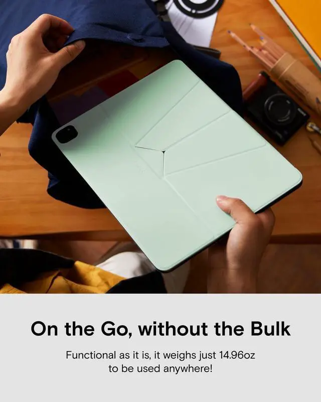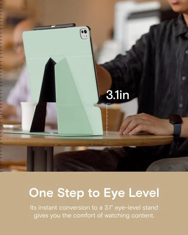 Higher, Lighter, More Portable - MOFT unibody iPad Pro case delivers instant yet stable elevation with its foldable design, making it effortless to carry and perfect for any scenario - from family picnics to video conferences. At just 0.38 inches thick, the iPad Pro 13-inch case leads the industry in slimness without compromising protection. ^^ 3 Modes to Diversify Daily Life - A single fold creates a 3.1 -inch stand, instantly elevating your screen to eye level in Floating Mode for movies or SideCar work, switching to Focus Mode for distraction-free learning or unlocking sketching in Drawing Mode all with one case.