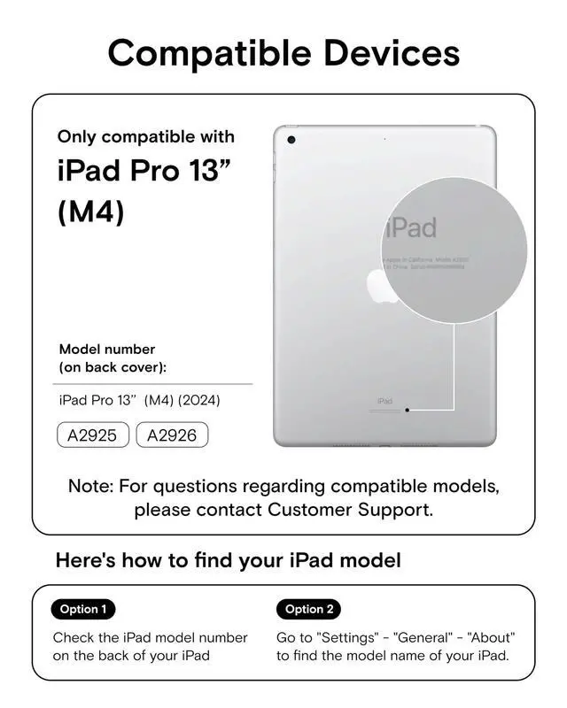 ^^ Detachable Pencil Protection - The innovative modular pen holder uses thin metal to secure your Apple Pencil. When you're ready to go, magnetically clip on the pencil holder to keep your Apple Pencil in place. Detach it anytime for a comfortable iPad grip. ^^ MOVAS Innovation - Made with MOVAS, the revolutionary vegan leather, that combines a silky touch and resistance to everyday dirt and scratches. Sustainably crafted with eco-friendly materials for enduring durability. ^^ Compatibility - Exclusively compatible with the iPad Pro 13" (M4, 2024) Models A2925 & A2926.