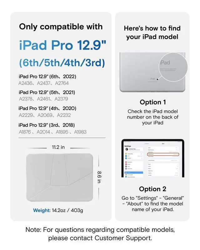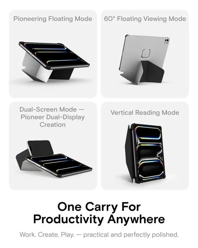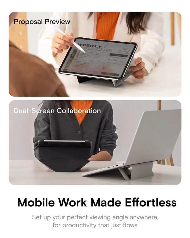 Note: It will not be compatible other model. Please check your iPad model before purchase. For questions about compatible models, please feel free to contact us. ^^ iPad Folio, Case & Stand in OneElevate your experience with flexibility of iPad Folio Stand. Featuring 20+ adjustable angles, this tablet protector ensures the perfect view for any taskfar surpassing standard iPad cases. From steep angles for hands-free viewing to subtle tilts for ergonomic typing, MOFT iPad case provides stability. It keeps your screen perfectly positioned without wobbling, while keeping your ipad safe and secure. ^^ Adapts to