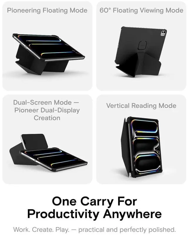 Every Moment: This versatile tablet protector is designed for every scenario. With 20+ adjustable angles, it perfectly adapts to your daily needswhether you're streaming movies, joining online meetings, working from home, sketching, creating on your iPad. From professional tasks in the office to creative sessions in a cafe or following recipes in the kitchen. it is the essential all-in-one companion for both productivity and leisure.