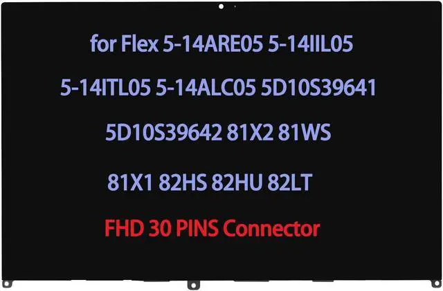 Compatible Model: for Lenovo IdeaPad Flex 5-14ARE05 5-14IIL05 5-14ITL05 5-14ALC05 5D10S39641 5D10S39642 81X2 81WS 81X1 82HS 82HU 82LT LCD Display Screen Replacement Digitizer Assembly