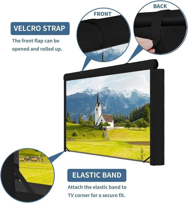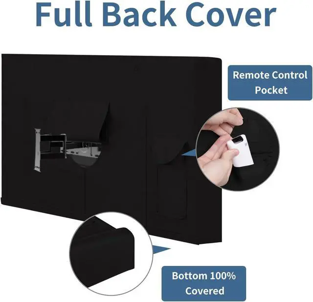 Velcro Closure for Full Protection: Velcro closure for the tv cover provides quick installation and removal.Full cover with bottom sealed. Wrap-Around Coverage provides full protection for your TV outside.