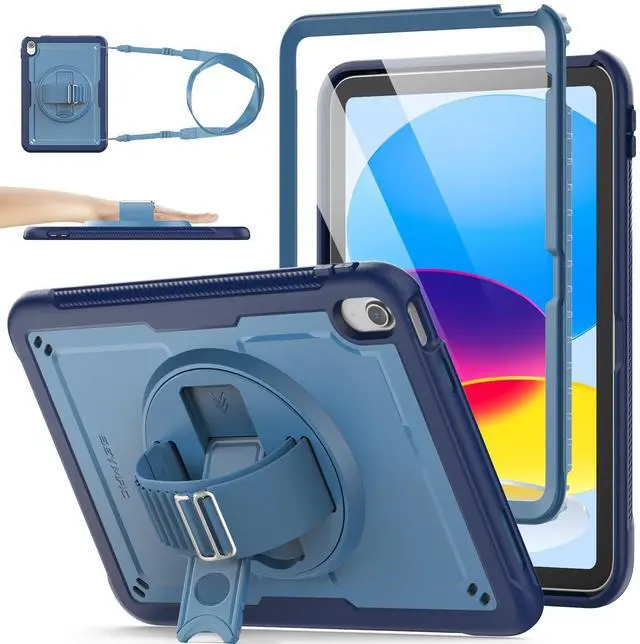 SEYMAC stock Case for iPad 11 inch (A16, 11th) 2025, for iPad 10th Generation 10.9'' 2022, Drop Protection Case with Screen Protector, Pen Holder, Stand, Hand&Shoulder Strap, Frosting-Anti-Slip, Blue