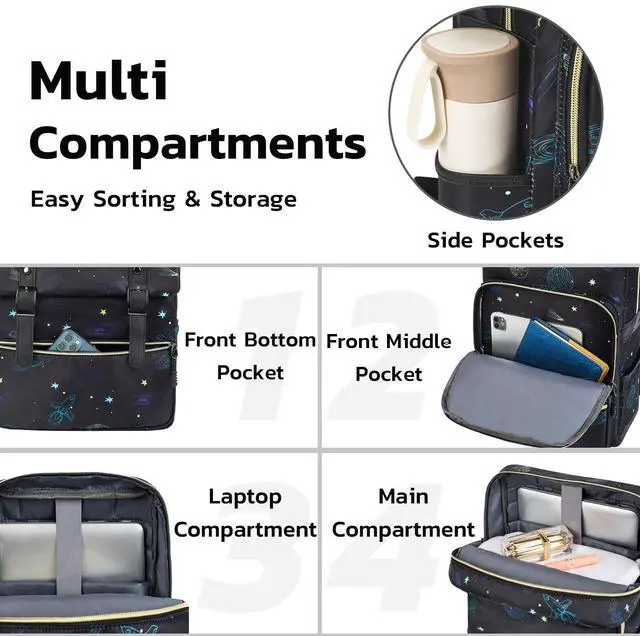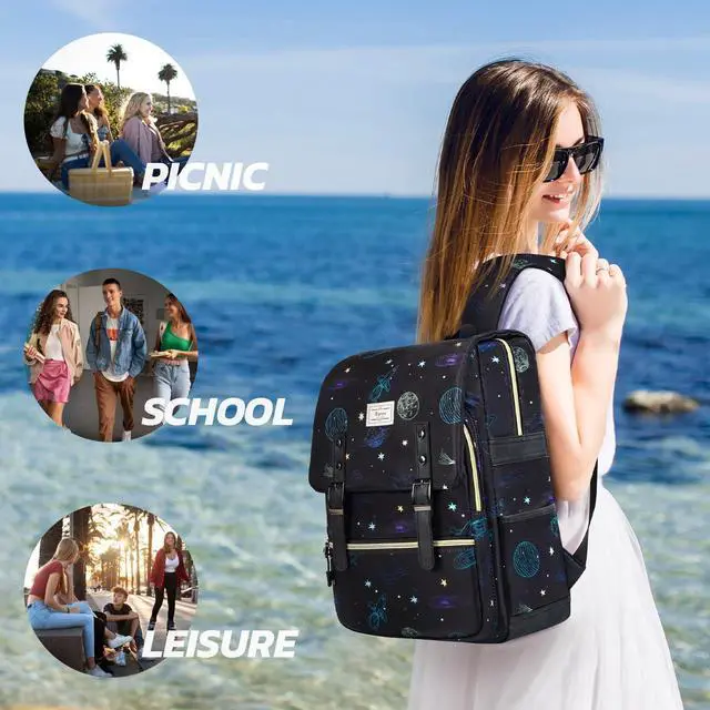 Practical Features,Detailed Design: This backpack is equipped with a range of practical features. Adjustable padded shoulder straps ensure lasting comfort. High-quality double zippers protects your belongings and prevents them from falling out. Laptop compartment with nylon hook-and-loop straps to securely fasten your devices. Magnetic buttons on the front flap and elegant PU leather details enhance your everyday carrying experience