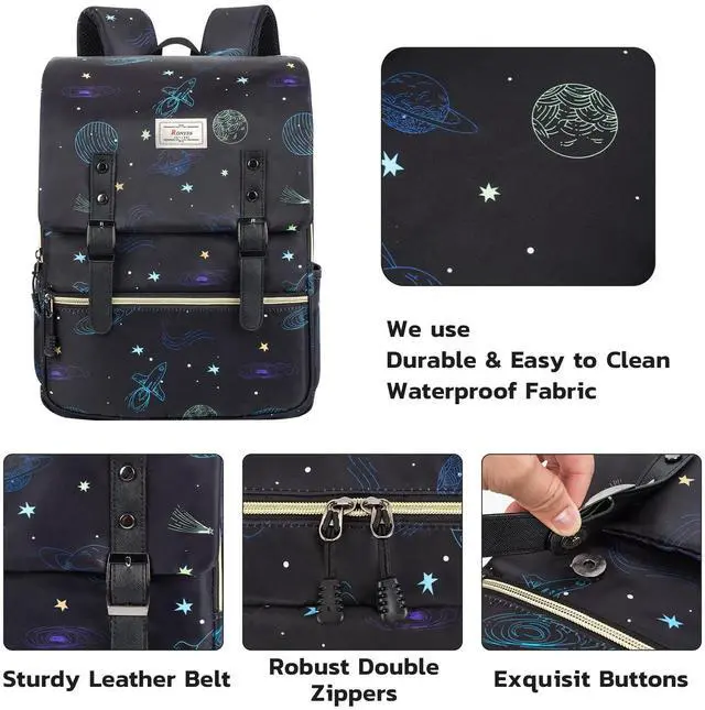 Convenient Portable,Perfect Size: The Ronyes vintage backpack measures 12*5.5*17 inches, accommodating various items such as books, documents, laptops, water bottles, snacks, and more. Weighing just 1.5 pounds, this vintage-style laptop backpack bag fits effortlessly under airplane or bus seats, making it ideal for daily use, short trips, or commuting. Even when fully packed, it maintains a stylish appearance, making it a sophisticated choice for any occasion
