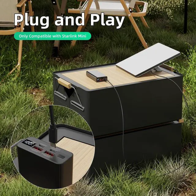 PD-Compatible Power Banks: Use the Starlink Mini Power Cable with PD-compatible power banks to provide a stable power supply for your Starlink Mini dish antenna. For the best performance and long-term reliability, choose a power bank with at least 100 watts of output power. Note: The power bank must support the PD (Power Delivery) protocol.