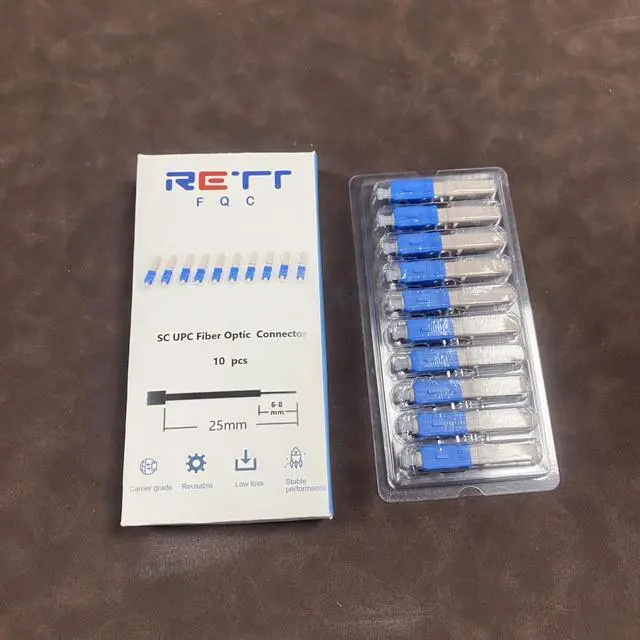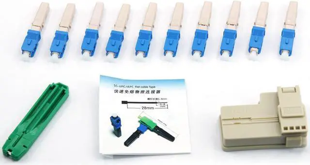 RETT FQC 100pcs SC UPC Fiber Optic Quick Connector with Matched Tools Automatic Switch Type Fiber Optic Fast Connectors Single Mode Mechanical Connectors Adapter for 2mm x 3mm Butterfly Fiber Cable