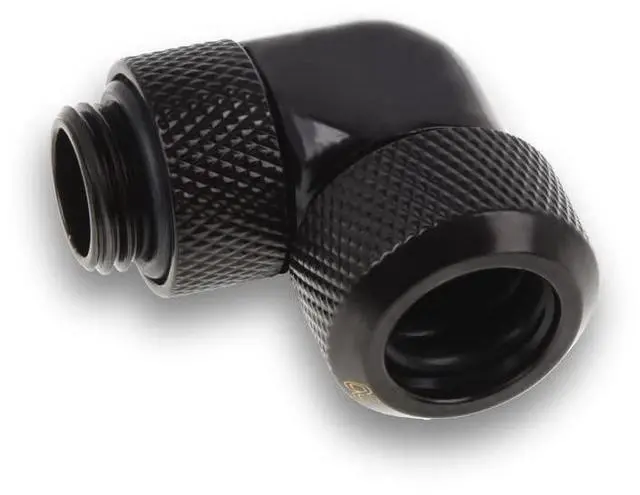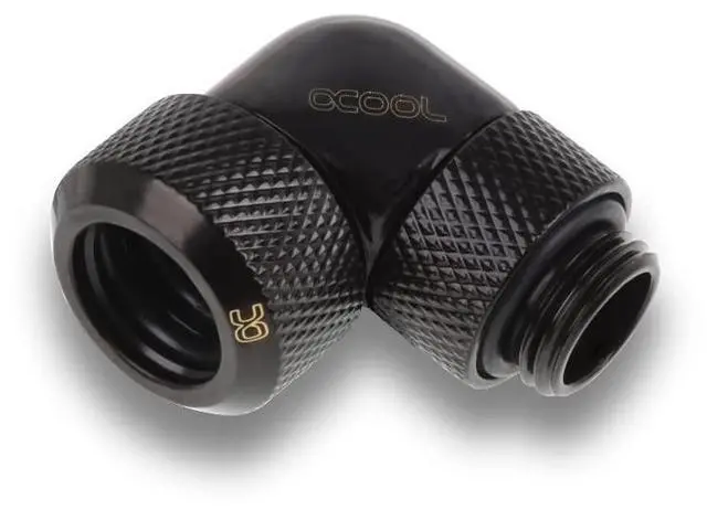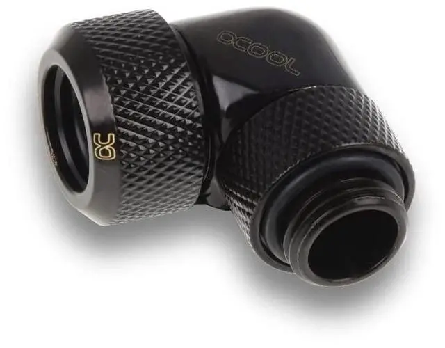 Model: 90° compression fitting 13mmThis fitting has a G1/4" thread on one side and is thereby compatible with 95% of components. The other side fits a 13mm acrylic or brass tube. This fitting is bent 90° in the middle to avoid complicated hose connections. The threaded side is rotatable for maximum flexibility. Technical dataMaterialbrassL x W42, 5 x 21mmThreadsG1/4" OT ^^ 13mm (OD 1/2")Thread length5mmPossible rotation360°Version90° angledColorblackDatasheet (EN)