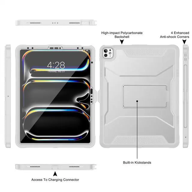 Rugged Armor Shockproof Protection Multi-layered hard PC back and flexible TPU bumper provide your iPad Air / Pro 13-Inch 2025 2024 & iPad Pro 12.9 2022 2021 2020 strong protection against drops,bumps, and impacts, also easy to install