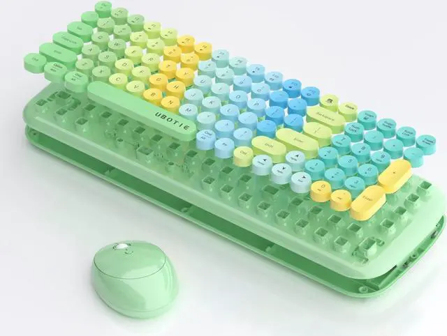 Wireless Keyboards and Mouse Combos, UBOTIE Colorful Gradient Rainbow Colored Retro Typewriter Flexible Keyboard, 2.4GH z Connection and Optical Mouse
