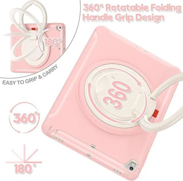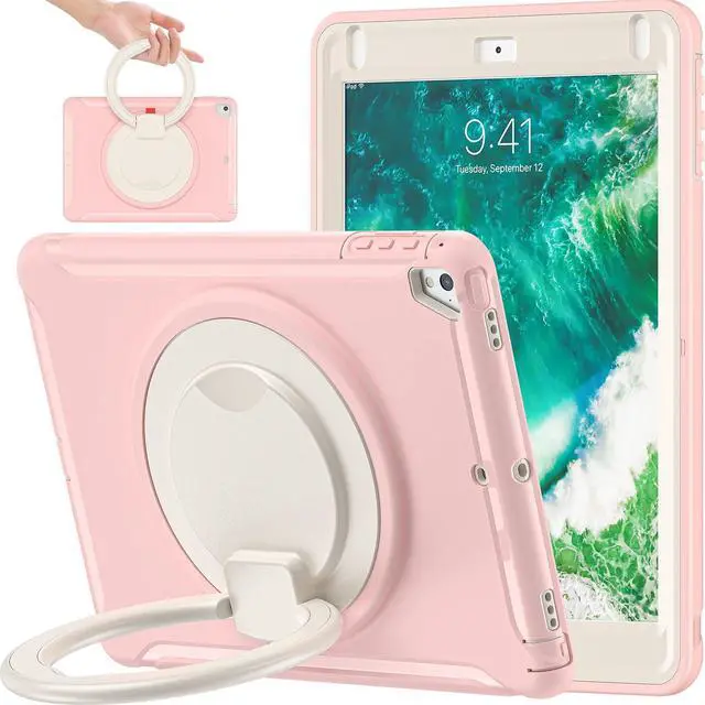 BATYUE Case for iPad 6th Generation 9.7 inch 2018, iPad 5th Gen 2017, iPad Air 2/ iPad Pro 9.7 '', Shockproof Protective Cover with Pencil Holder &Rotating Kickstand, for Kids, Boys, Girls (Cheery Pink)