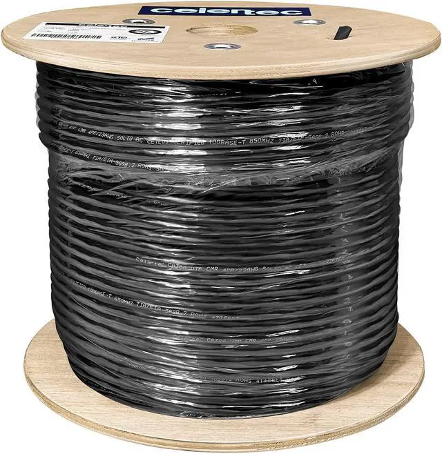 celertec CAT6A Ethernet Cable, 500ft, 23AWG Solid Bare Copper, UTP Unshielded Twisted Pair, CMR Riser Rated &ETL Listed, 650Mhz/10Gigabit Network Speed, Category6 Augmented, Bulk Ethernet Cable- Black
