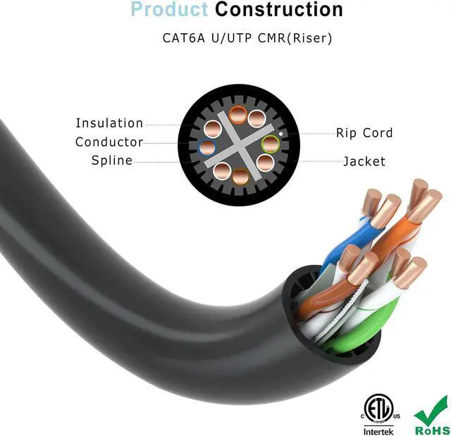 • INDOOR USE. The Cat6A cmr cable is for indoor installation at riser spaces. The flame retardant jackets help reduce the spread of flame between floors, which is safe for use.