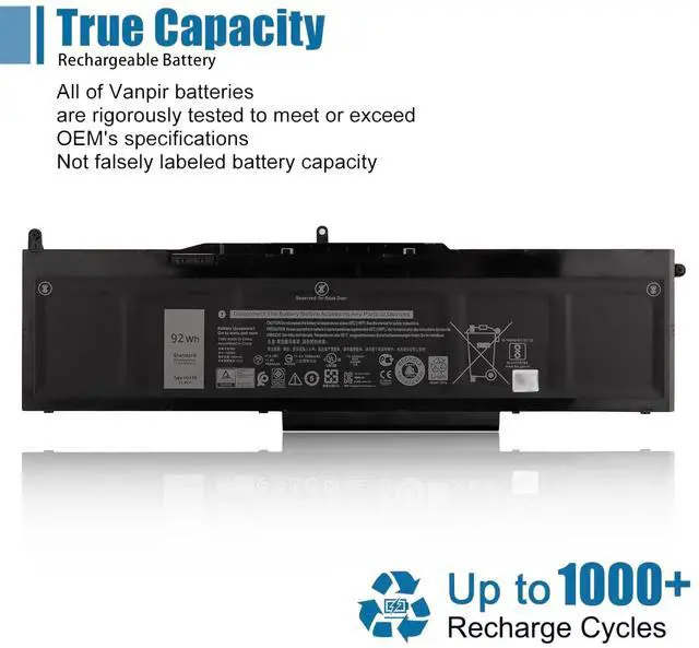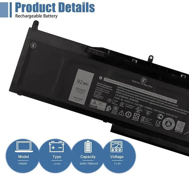 SpecificationsModel: VG93N. Type: Li-ion. Voltage: 11.4V. Capacity: 92Wh 7666mAh 6-Cell. Battery can last 3-6 hours. Up to 1000 recharge cycles over the life of the battery.