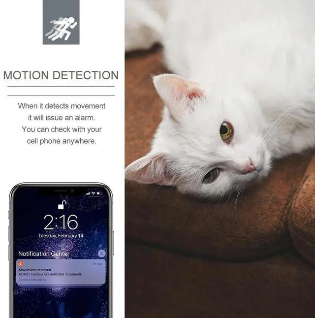When motion is detected, the camera will send a images to your phone. Get informed of every movement in your house, you can access the video feed at any time anywhere you want.