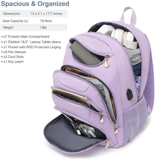 Boavan Laptop Backpack for women, 15.6 inch Laptop Bag with USB Port, Waterproof Travel Work Backpack Purse, Anti-Theft Teacher Nurse Doctor Casual Bookbags Office Business backpackPurple