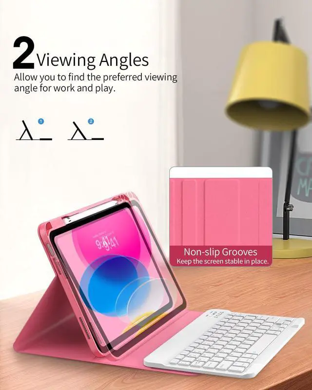 Multiple Viewing Angles: The iPad A16 keyboard case has two anti-slip grooves design for convenient standing angles, which turns your iPad into a portable laptop instantly. It's convenient for working, studying, writing, reading, painting, watching videos and so on