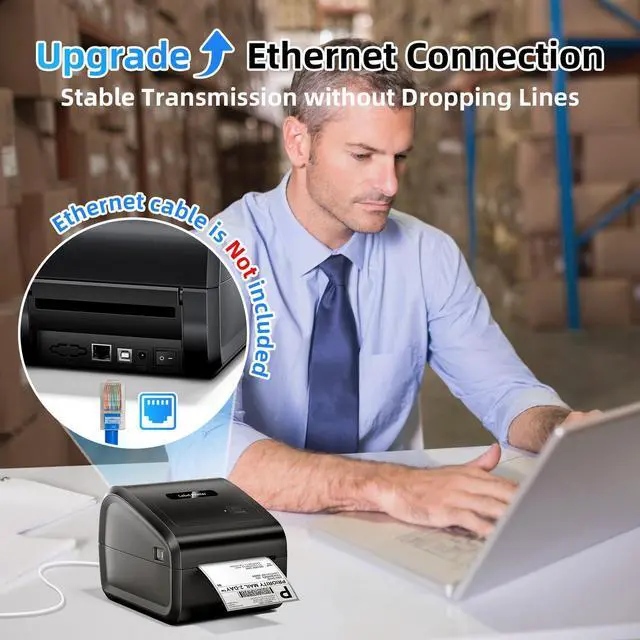 [3-IN-1 Ethernet Label Printer] - We made it! In addition to Bluetooth and USB, D550 Pro shipping label printer also supports Ethernet connection printing, can print labels anytime, anywhere from Win/MacOS computer on the same LAN! Besides, Ethernet printing ensures stable file transfers, no more worrying about print drops. Undoubtedly, Our thermal label printer can help your business grow faster and work more efficiently