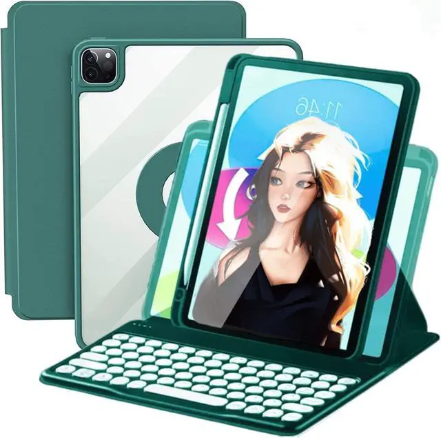 AnMengXinLing Keyboard Case for iPad 9th/ 8th/ 7th Generation, Vertical Case for iPad 10.2/Air3/Pro10.5 with Keyboard and Pencil Holder, Magnetic Stand Rotating Detachable Case with Clear Back (Teal)