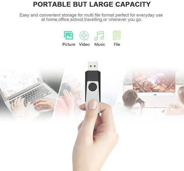 Portable USB Flash Drive -The swiveling metal clip can protect the USB connector from damage when not in use, no cap to lose, portable design makes it easy to attach the USB to the keychain or put it into pocket,keep important files with your anywhere