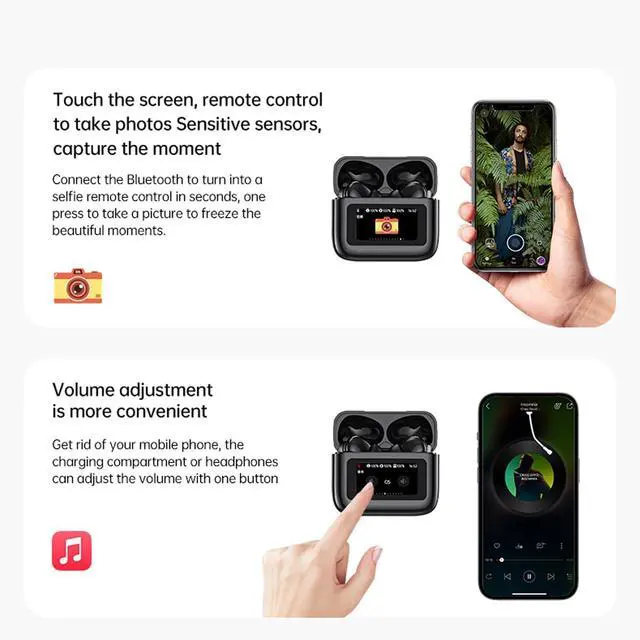 Latest smart touchscreen earbuds, it's easy to get relaxing music without the hassle of cell phones and apps!