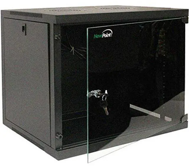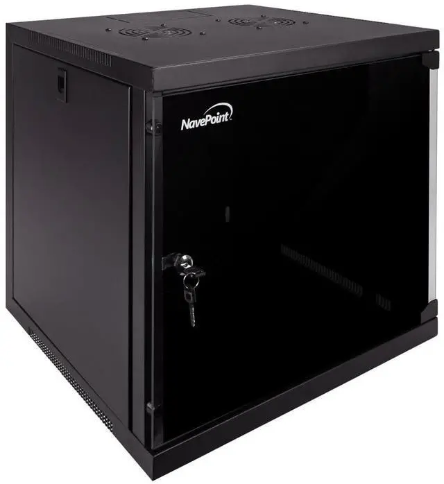 NavePoint 9U Wall Mount Network Cabinet for 19 IT Equipment with Lockable Glass Door & Removable Side Panels, 2 Fans, 17.7 Deep, Pre-Assembled