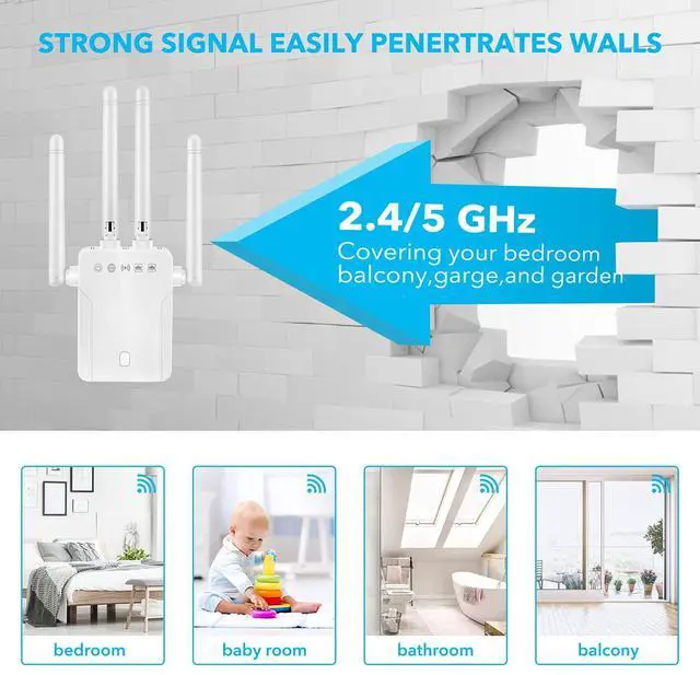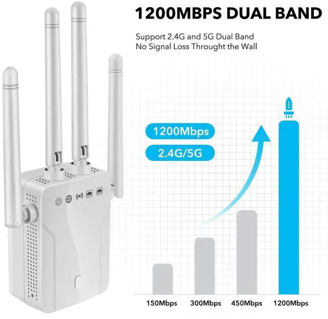 WiFi Range Extender Signal Booster - 1200Mbps WiFi Extender Covers up to 9800sq. ft, 2.4G /5G WiFi Booster and Signal Amplifier, Wireless Internet Booster for Home, 1-Tap Quick Setup