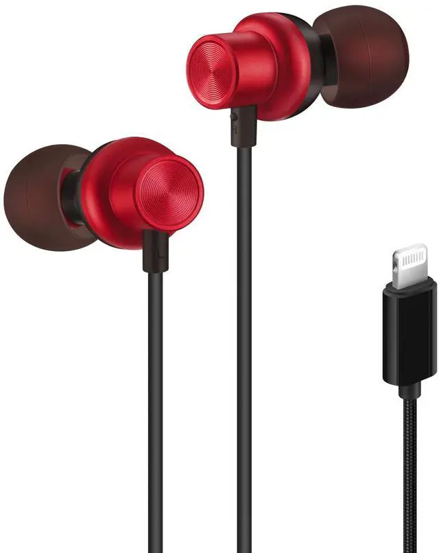 PALOVUE Lightning Earphones - Magnetic In-Ear Earbuds with Mic & Controller - Compatible iPhone 13/12/11 Pro Max/X/XS Max/XR/8/7 - EarflowPlus Metallic Red