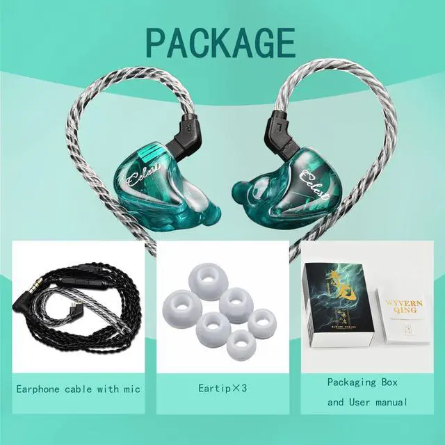 Package:1 Pair Earphone,1 Set Eartips, 1Pcs Earphone Cable with mic,1 Pcs User Manual